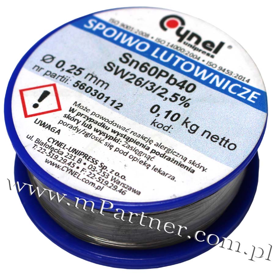 Cyna 0,25mm 0,10kg z topnikiem Cynel Sn60Pb40