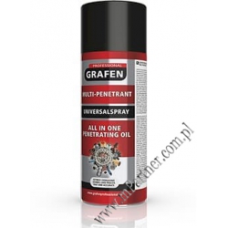 GRAFEN Professional Multi-Penetrant jest produktem przeznaczonym do smarowania, czyszczenia i luzowania oraz do zastosowań serwisowych ogólnego przeznaczenia. Poprzez swoje właściwości i formułę bez silikonu, tworzy oleistą warstwę ochronną, usuwa brud oraz smar, luzuje zardzewiałe/utlenione części np. śruby, nakrętki oraz jest hydrofobowy. Grafen Multi-Penetrant zapobiega piszczeniu jak i korozji w samochodach, urządzeniach gospodarstwa domowego, smaruje przesuwne okna i drzwi, zawiasy, sprężyny. Pomaga usuwać wilgoć z powierzchni metalowych, smar z felg samochodowych, łańcuchów (rowerowych), kół zębatych, łożysk. Możliwa aplikacja produktu pod każdym kątem (360 stopni).