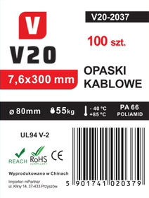 Mocne opaski zaciskowe V20 czarne 7,6 mm x 200 mm - 100 sztuk