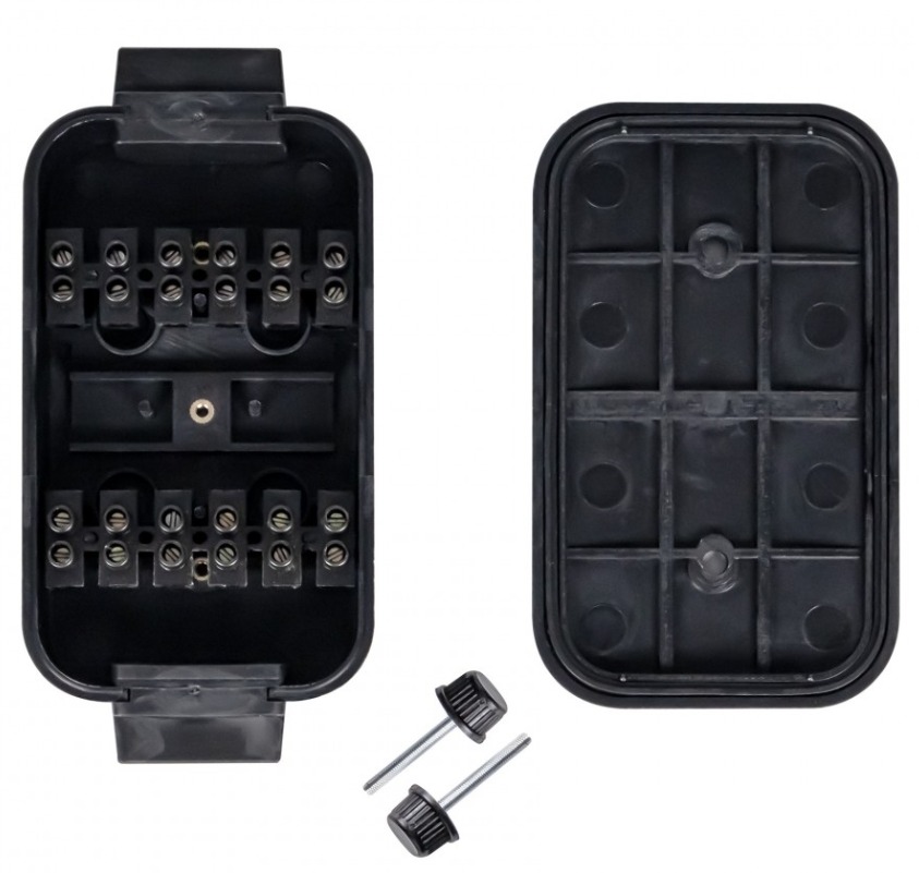 Puszka elektryczna 12-polowa to solidne rozwiązanie do organizacji i zabezpieczenia połączeń instalacji elektrycznej w pojazdach ciężarowych. Wykonana z wytrzymałego tworzywa w kolorze czarnym, zapewnia dobrą odporność na uszkodzenia mechaniczne i warunki atmosferyczne. Prosta konstrukcja oraz możliwość wielokrotnego otwierania i zamykania ułatwiają serwis i rozbudowę instalacji.
